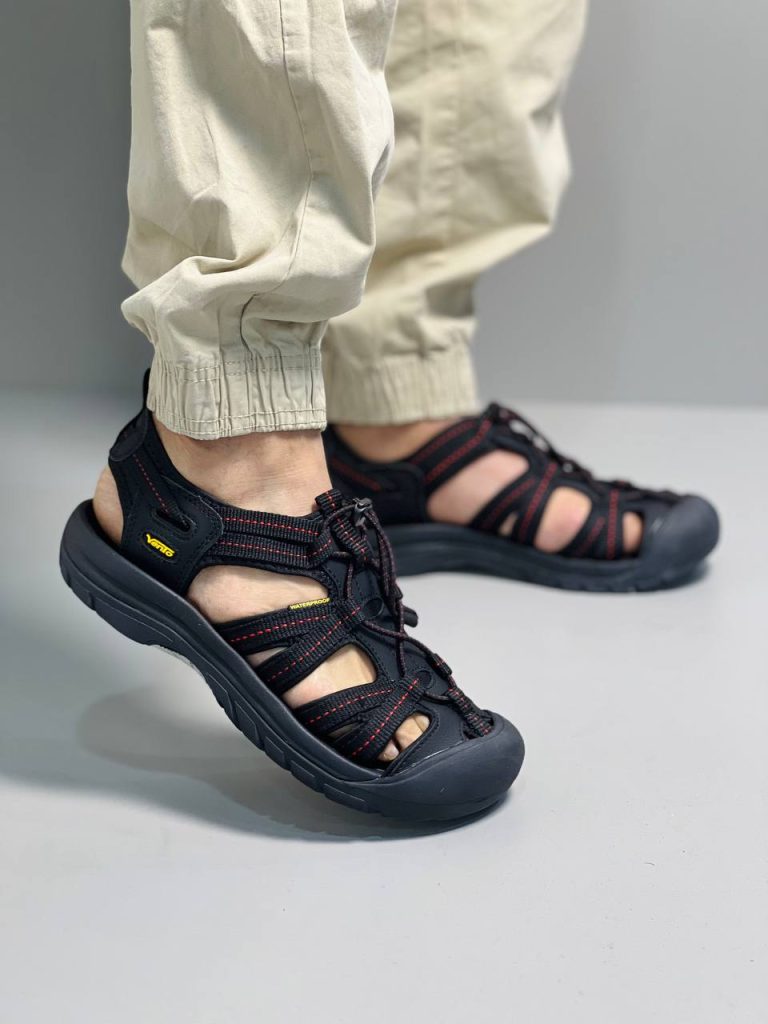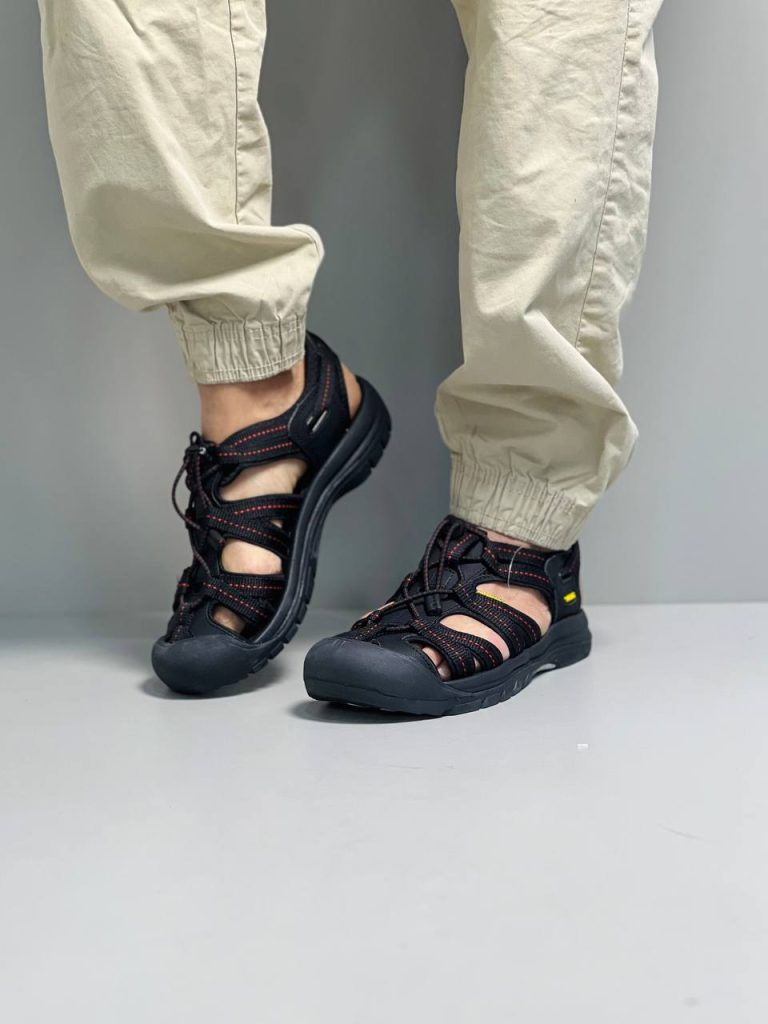 صندل طبیعتگردی مشکی خط قرمز مردانه