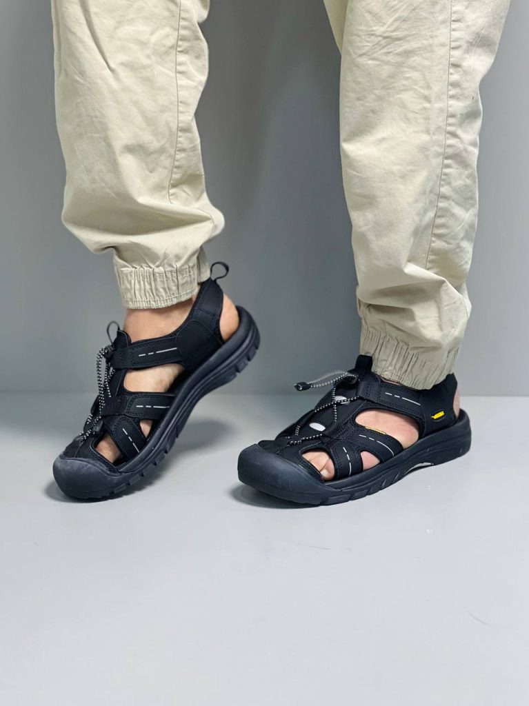 صندل طبیعتگردی مشکی خط سفید مردانه